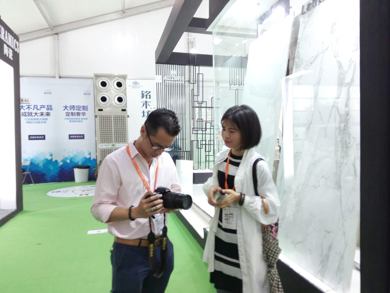 今日是陶博會第四天,天氣預告說臺風暴雨將至,全市小學幼兒園都停課了。上午和楊勁文社長一起去逛中國陶瓷城展館,看到人氣不錯真是出乎意料。跟著技術控去看產品就是大不同,許多技術工藝的訣竅和市場行情都弄懂了。騰達的余總,加西亞的謝潔美,燊科的梁智玲,居壁的肖斌……很多都是楊社長的老同事老朋友,他們提供的行業資訊當然都是很真實很可靠滴。